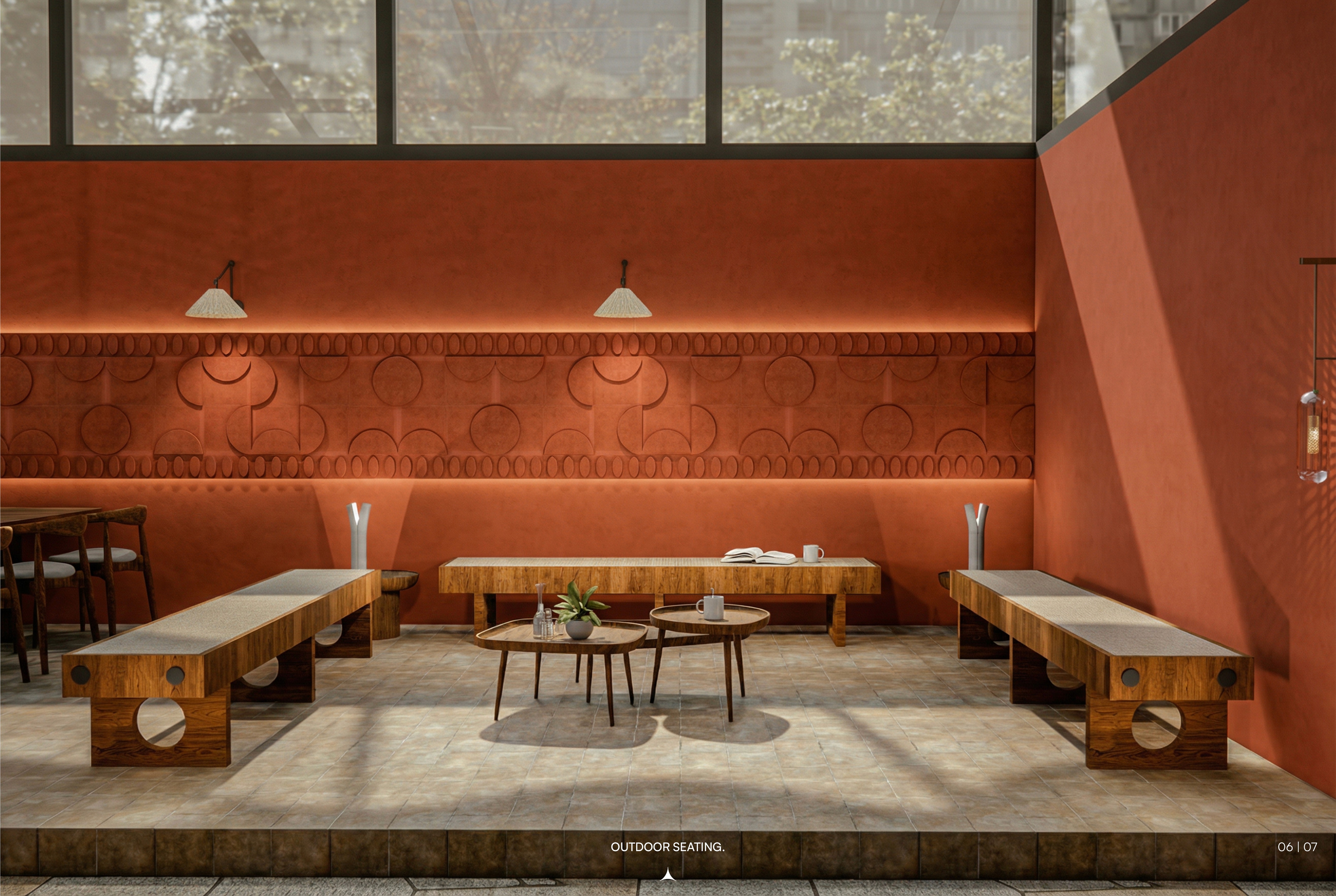 House of Terracotta is a 6500 sq.ft F&B destination designed to merge indoor-outdoor dining through material authenticity and natural light. The space needed to create an immersive culinary experience that celebrates terracotta's warmth while maximizing connection to sky and landscape.